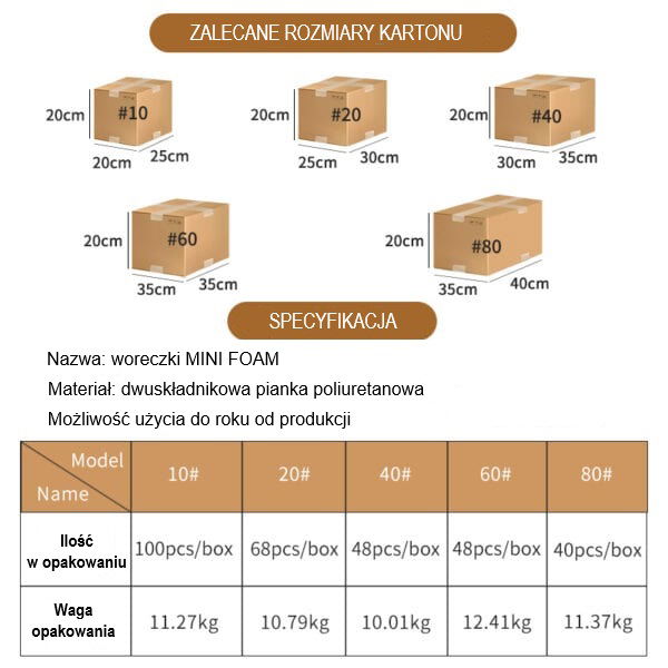 ROZMIARY I DOPASOWANIE DO KARTONÓW